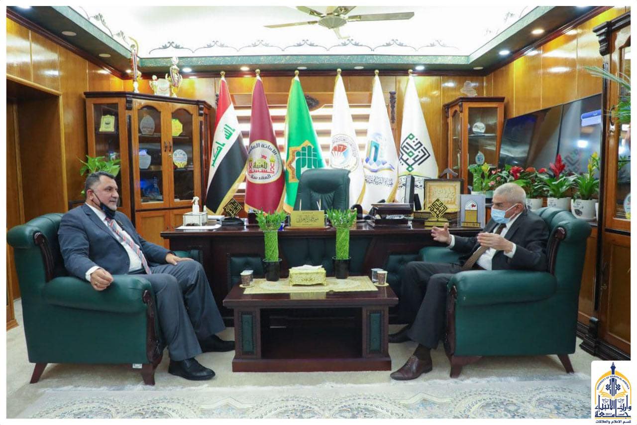زار وفد من جامعة وارث الانبياء (عليه السلام) جامعة العميد التابعة للعتبة العباسية المقدسة متمثلاً بالسيد المساعد العلمي لرئيس الجامعة الاستاذ الدكتور عباس الدعمي والسيد عميد كلية الطب الاستاذ الدكتور فالح البياتي والسادة معاون رئيس قسم التعليم العالي ورئيس قسم الشؤون العلمية ، كان باستقبال الوفد السيد رئيس جامعة العميد الأستاذ الدكتور مؤيد الغزالي ، تباحث الطرفان في العديد الجوانب التي تخص الواقع التعليمي وآليات التعاون العلمي والأكاديمي وتبادل الخبرات بين الجامعتين لاسيما وقد افتتحت هذا العام كلية الطب في جامعة وارث الأنبياء (عليه السلام).