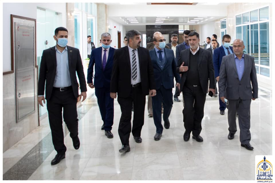 زار وفد اكاديمي من جامعة واسط جامعة وارث الانبياء (عليه السلام) حيث ترأس الوفد السيد رئيس جامعة واسط الاستاذ الدكتور مازن حسن الحسني برفقة السيد عميد كلية الطب وبعض السادة عمداء وتدريسي كليات جامعة واسط ، وكان باستقبال الوفد السيد رئيس قسم التعليم العالي في العتبة الحسينية المقدسة الدكتور افضل الشامي ، تم خلال اللقاء عرض برنامج تعاون بين الجامعتين يهدف الى تبادل الخبرات والتدريب والاستشارات في المجالات ذات الاهتمام المشترك وخاصة المتعلقة بتطوير المناهج الدراسية ورفع كفاءة الهيئة التدريسية وتنمية الانشطة الخاصة بالطلبة والملاكات العلمية والادارية والفنية .