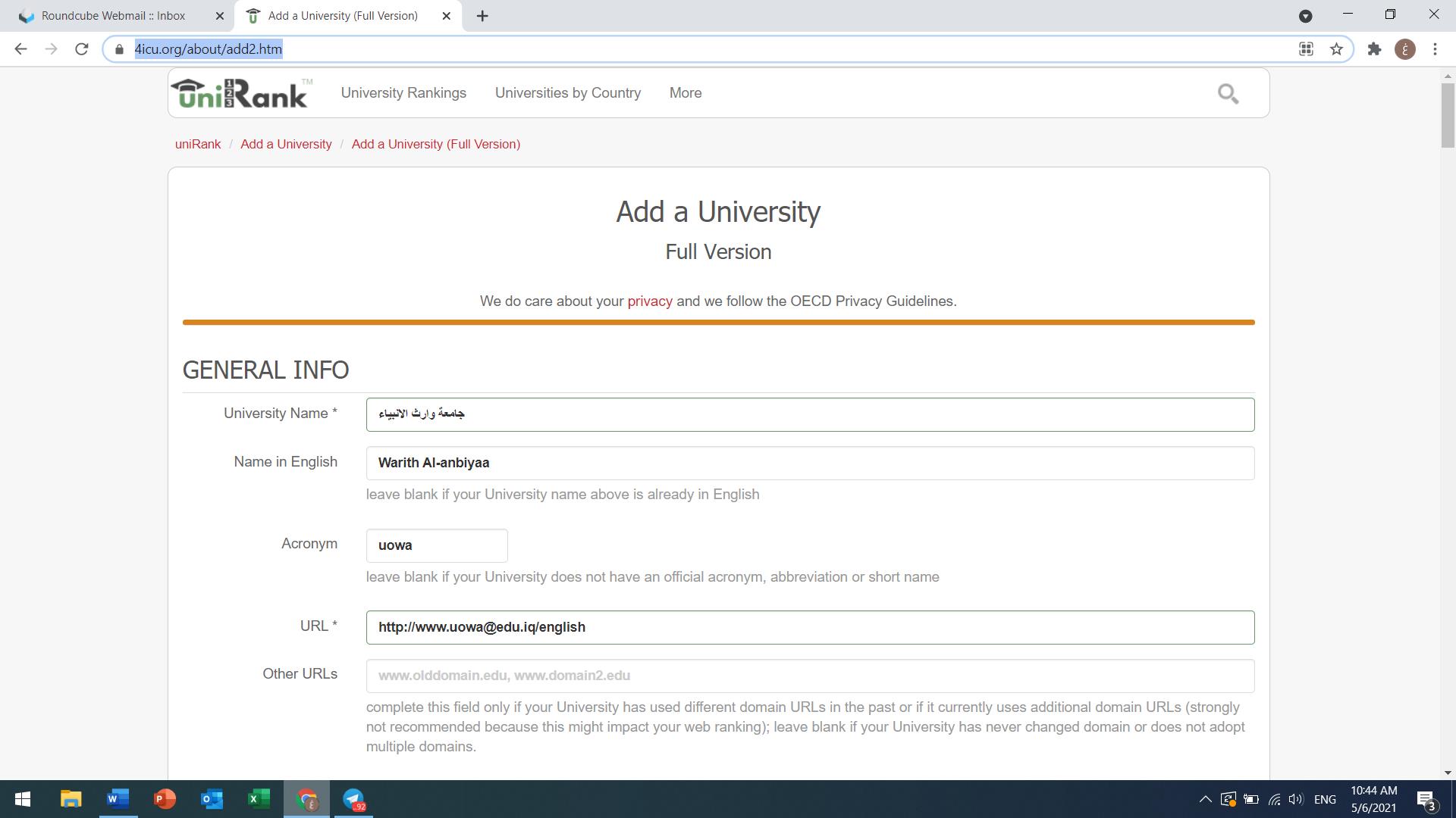3.    تم اكمال متطلبات تسجيل جامعتنا في موقغ التصنيف الاسترالي UniRank.