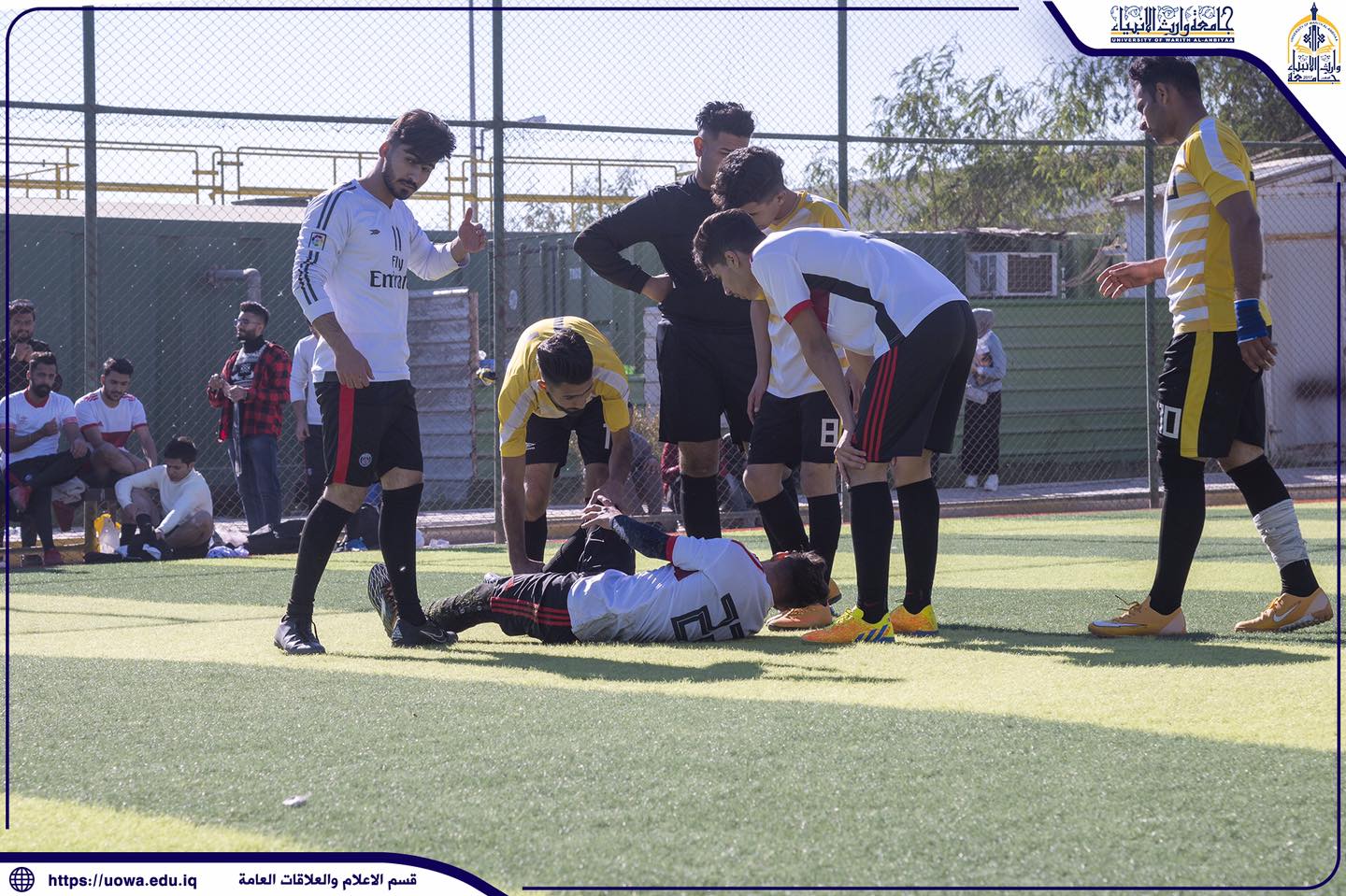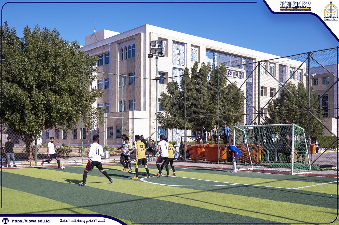 بطولة الجامعة لخماسي الكرة بين فرق كلية الطب وكلية القانون التي انتهت بفوز فريق كلية الطب ب5 اهداف ل4 وتستمر منافسات البطولة بنظام التسقيط الفردي بين كليات واقسام الجامعة لينتج عنها فريق الجامعة الذي سينافس في البطولات الجامعية .