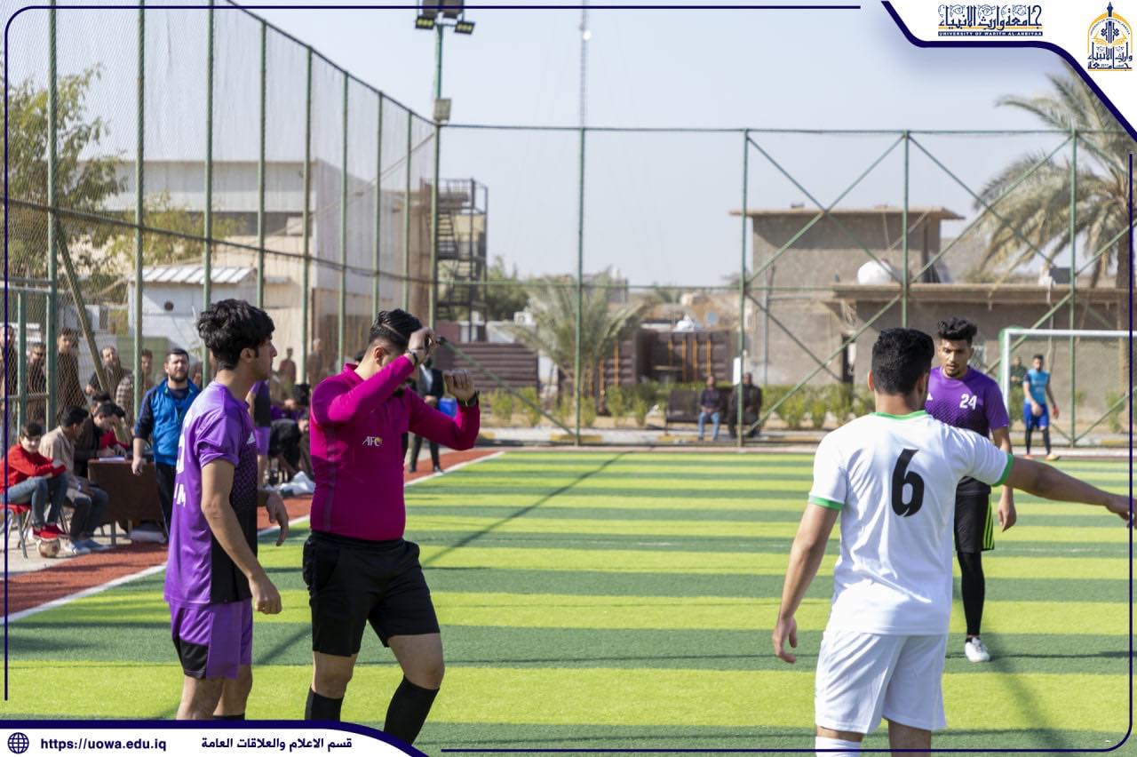بالصور...استمرار منافسات بطولة جامعة وارث الأنبياء (عليه السلام) لخماسي الكرة بين فرق كليات واقسام الجامعة
