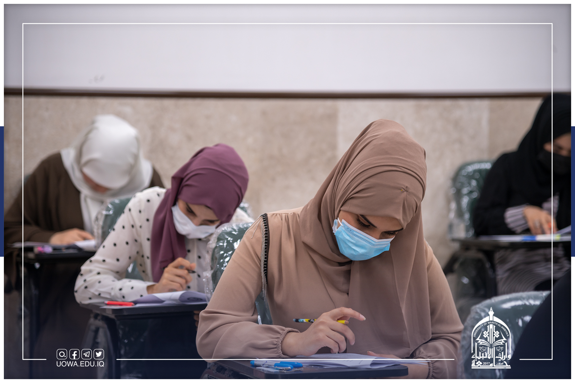 بانسيابية وتنظيم عالي، وبإشراف وزارة التعليم العالي والبحث العلمي، استمرار الامتحانات النهائية لطلبة كليات وأقسام جامعة وارث الانبياء(عليه السلام)