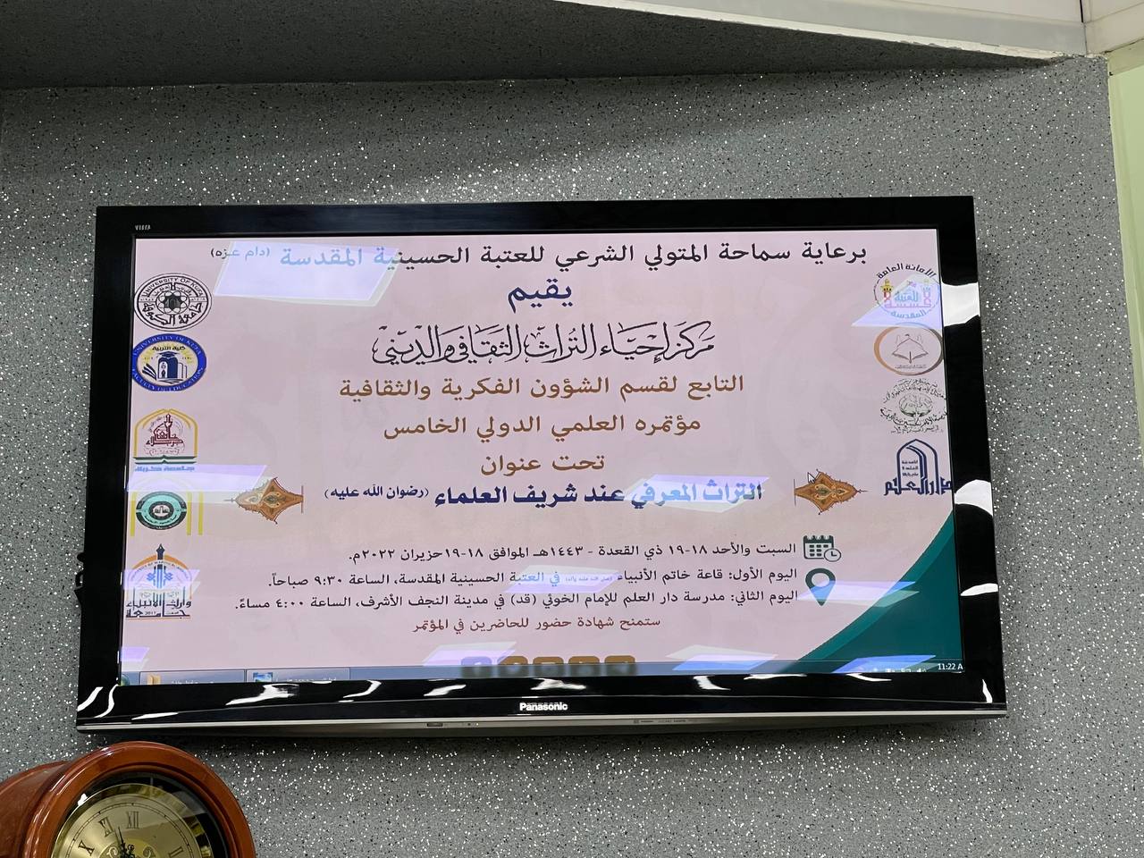 شارك مجموعة من أساتذة كلية العلوم الإسلامية في جامعة وارث الانبياء في أعمال المؤتمر العلمي الدولي الخامس والذي كان تحت عنوان التراث المعرفي عند شريف العلماء والذي أقامه مركز احياء التراث الثقافي والديني التابع لقسم الشؤون الفكرية والثقافية في العتبة الحسينية المقدسة بالتعاون مع مجموعة من الكليات والجامعات الحكومية والأهلية ومن ضمنها كلية العلوم الإسلامية في جامعة وارث الانبياء.