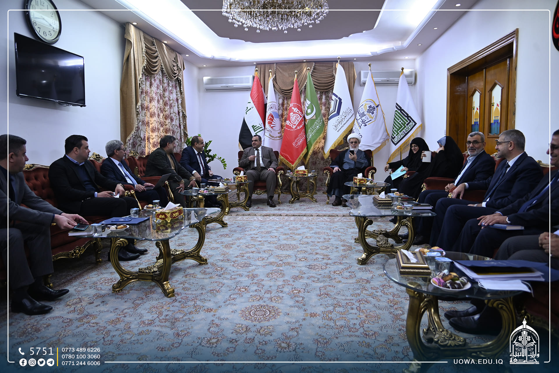للوقوف على التطور العلمي والاكاديمي في الجامعة، تفقد سماحة المتولي الشرعي للعتبة الحسينية المقدسة الشيخ عبد المهدي الكربلائي (دام عزه)، برفقة السيد رئيس هيئة الصحة والتعليم الجامعي الدكتور ستار الساعدي جامعة وارث الانبياء(عليه السلام)، وكان باستقبالهم السيد رئيس الجامعة الاستاذ الدكتور ابراهيم الحياوي.