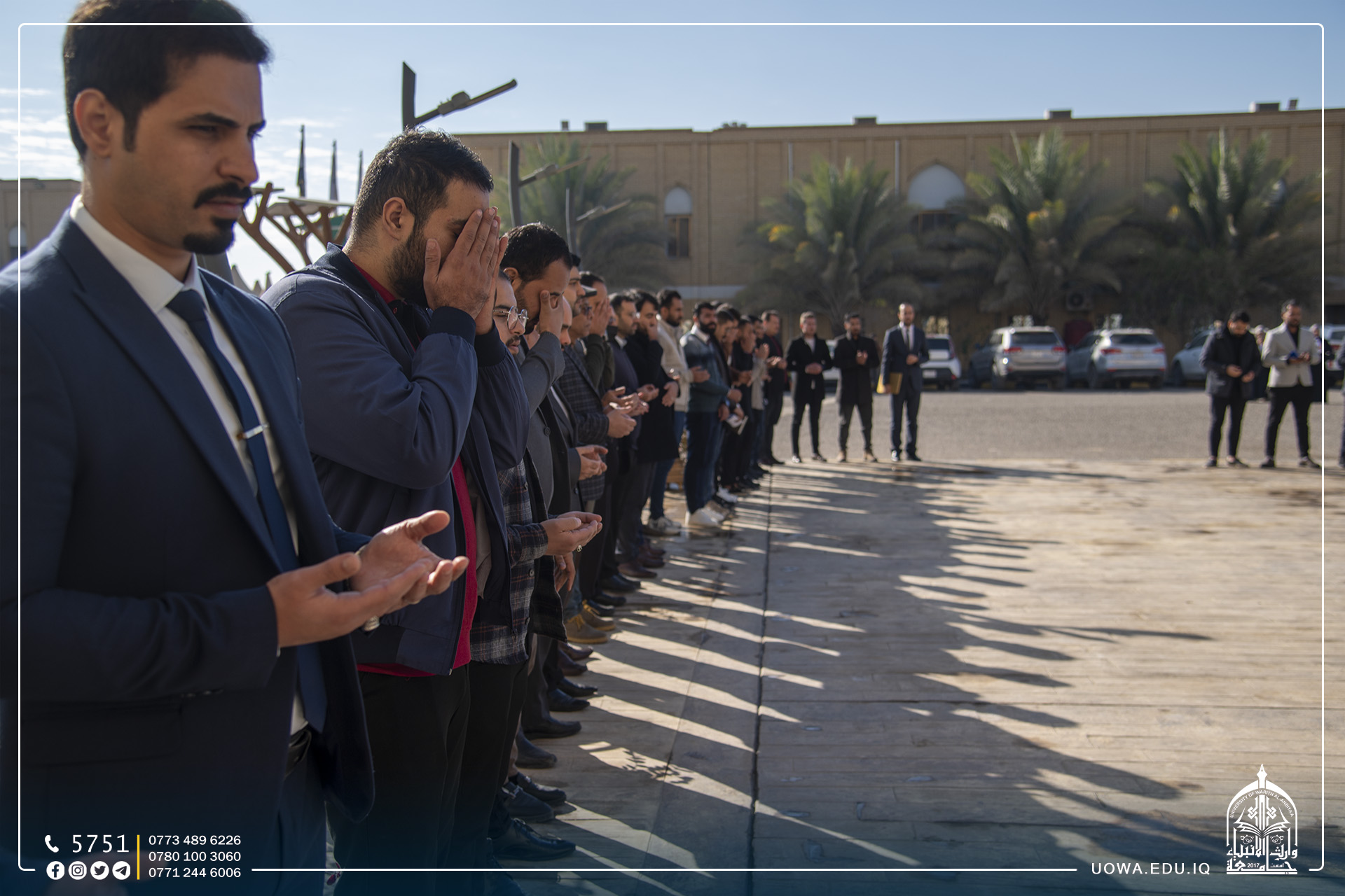 رئاسة جامعة وارث الانبياء(عليه السلام) تنظم وقفة حداد لقراءة سورة الفاتحة بمناسبة الذكرى السنوية الثالثة لاستشهاد قادة معارك النصر على التنظيمات الارهابية.