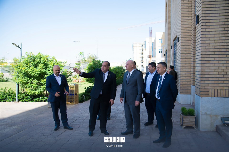اجرى السيد وكيل وزير التعليم العالي والبحث العلمي لشؤون البحث العلمي الاستاذ الدكتور حيدر عبد ضهد يرافقه السيد رئيس الجامعة الاستاذ الدكتور ابراهيم الحياوي