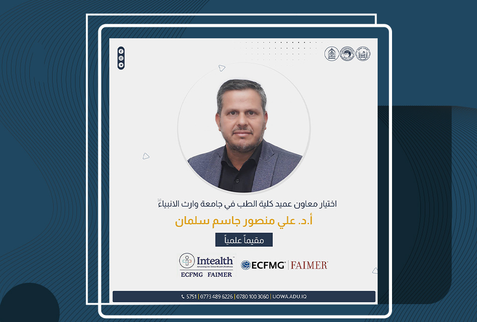 اختير السيد عميد كلية العلوم الإسلامية في جامعة وارث الأنبياء (عليه السلام)، الأستاذ المساعد الدكتور طلال الكمالي، عضوًا في لجنة مناقشة رسالة ماجستير لأحد طلاب الدراسات العليا في كلية العلوم الإسلامية بجامعة بابل.