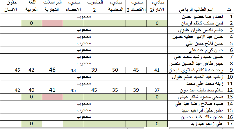 السعيات النهائية للكورس الثاني -قسم ادارة الاعمال مرحلة الاولى وللدراسة الصباحية والمسائية /2018-2019