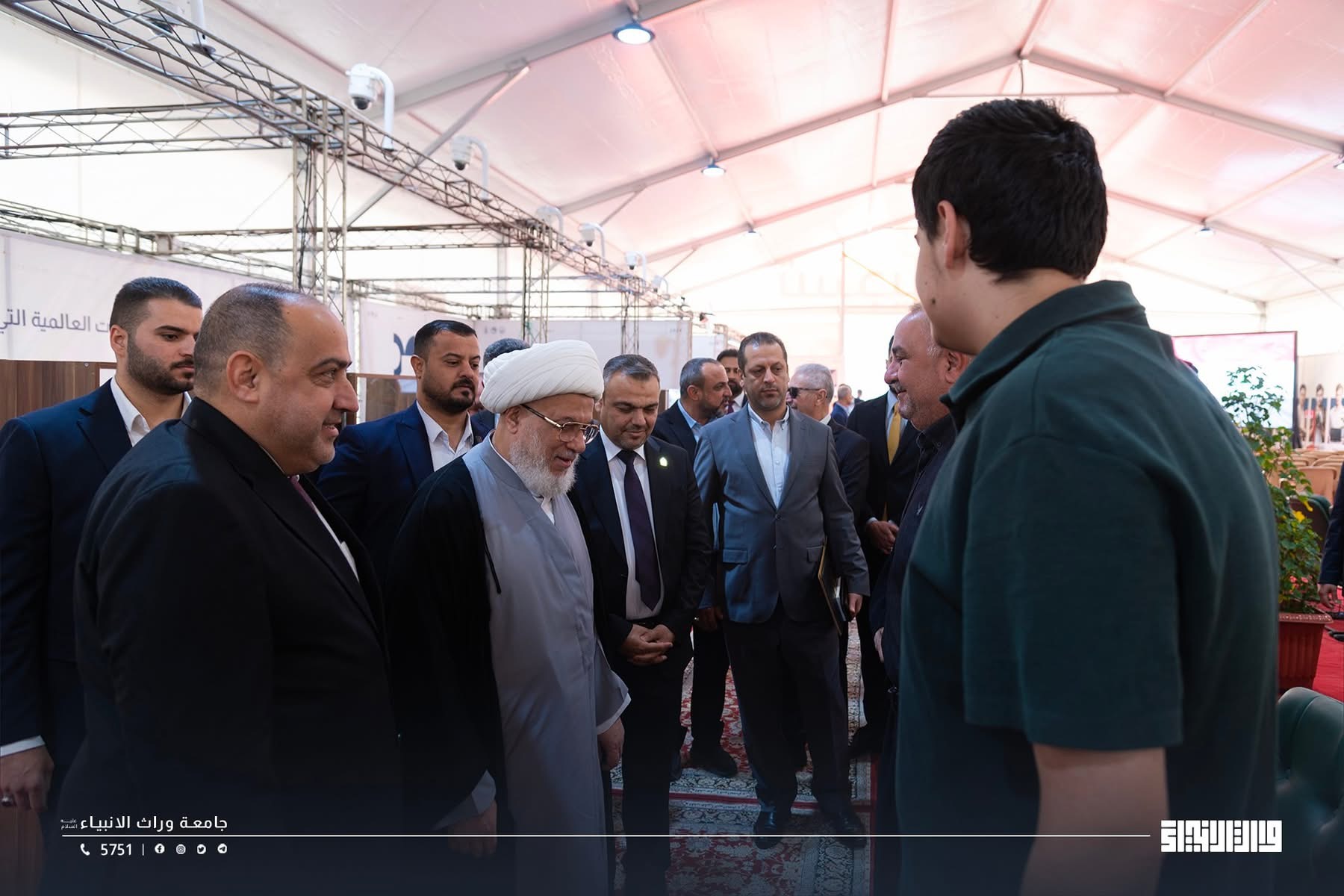 ممثلُ المرجعيةِ الدينيةِ العليا، سماحة الشيخ عبد المهدي الكربلائي (دام عزّه)، يزورُ خيمةَ التسجيل في جامعةِ وارث الأنبياء (ع) ويلتقي بعوائلِ الطلبة.