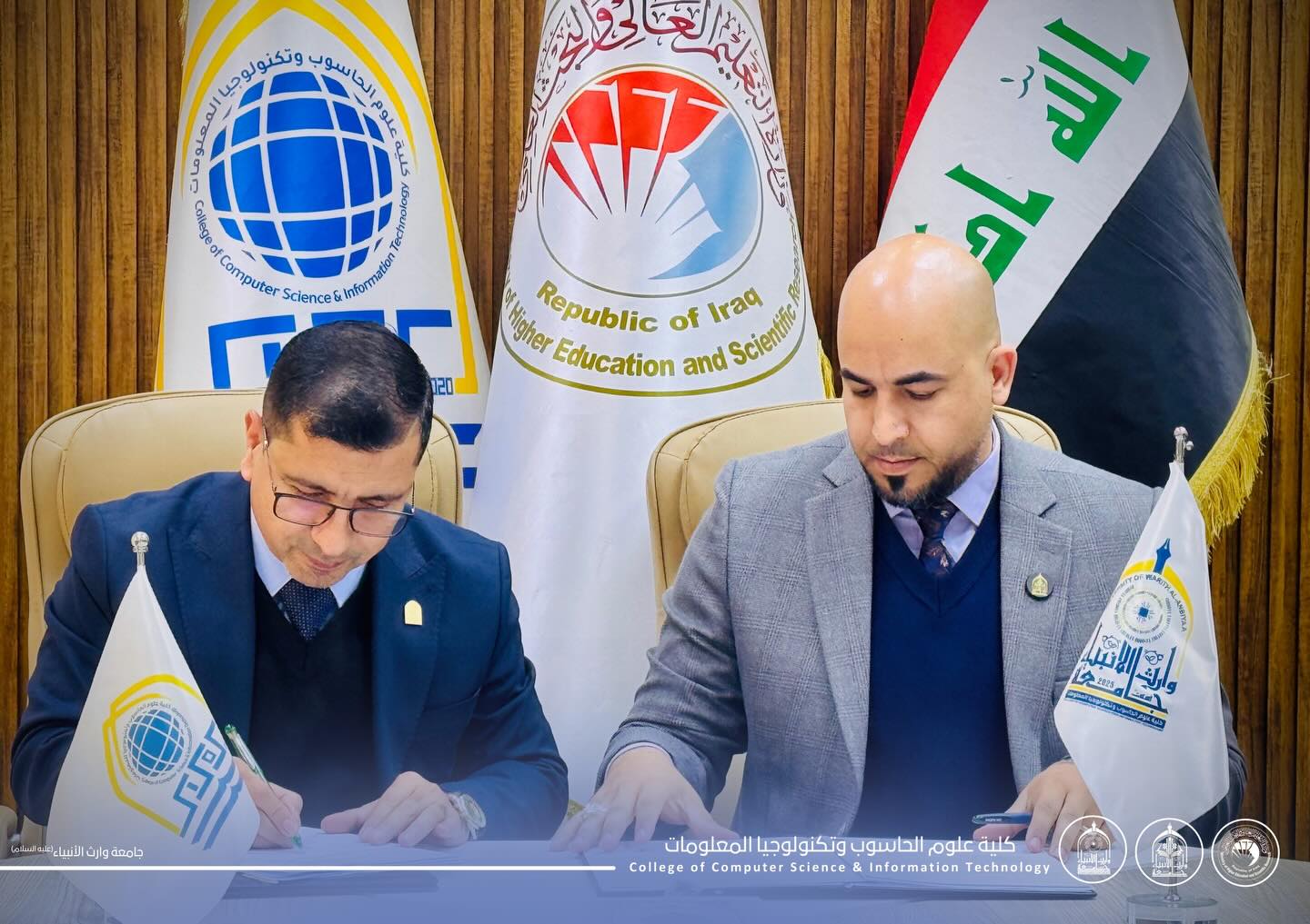 توقيع اتفاقية توأمة علمية بين كلية علوم الحاسوب وتكنولوجيا المعلومات في جامعة وارث الانبياء عليه السلام وجامعة كربلاء لتعزيز التعاون الأكاديمي