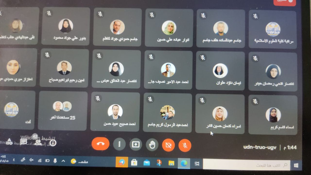 ندوة علمية بعنوان ( شبهات حول القرآن الكريم) يلقيها الدكتور نجاح حسين الحسناوي وبادارة م. م. ياسمين سلمان الطرفي في تمام الساعة الثامنة والنصف مساء من يوم السبت الموافق ٧ / ٨ /٢٠٢١ عبر منصة التعليم الإلكتروني الكوكل ميت