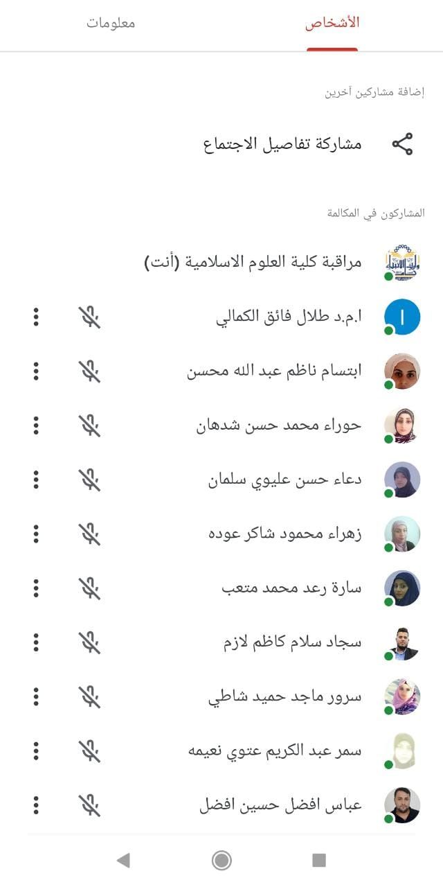 سير الامتحانات الإلكترونية والحضورية / الدور الثاني لطلبة كلية العلوم الإسلامية ليوم السبت الموافق ١١ / ٩ / ٢٠٢١