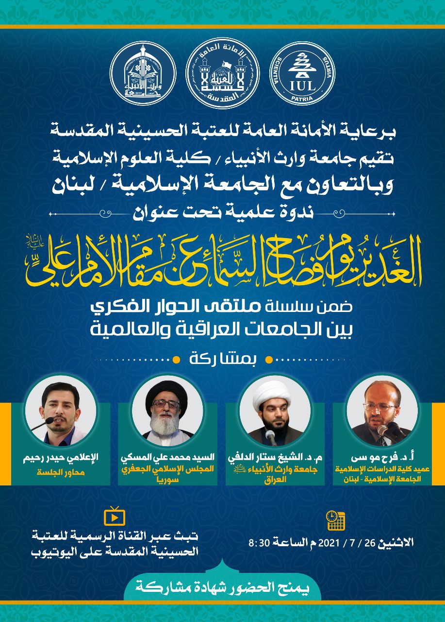 تقيم كلية العلوم الإسلامية في جامعة وارث الانبياء التابعة للعتبة الحسينية المقدسة مؤتمرها العلمي تحت شعار الإسلام حياة والموسوم ب( اثر الخطاب الاسلامي في بناء المنظومة القيمية )