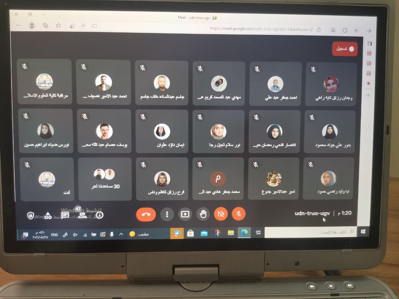 2021/07/14حلقة نقاشية بعنوان ( الصفات الصوتية معيارا دلاليا عند المتصوفة) يحاضر فيها الدكتور علاء صالح عبيد ويديرها الدكتور حكيم السلطاني في يوم الثلاثاء الموافق ١٣ / ٧ / ٢٠٢١ في تمام الساعة الثامنة والنصف مساءً عبر منصة التعليم الإلكتروني الكوكل ميت