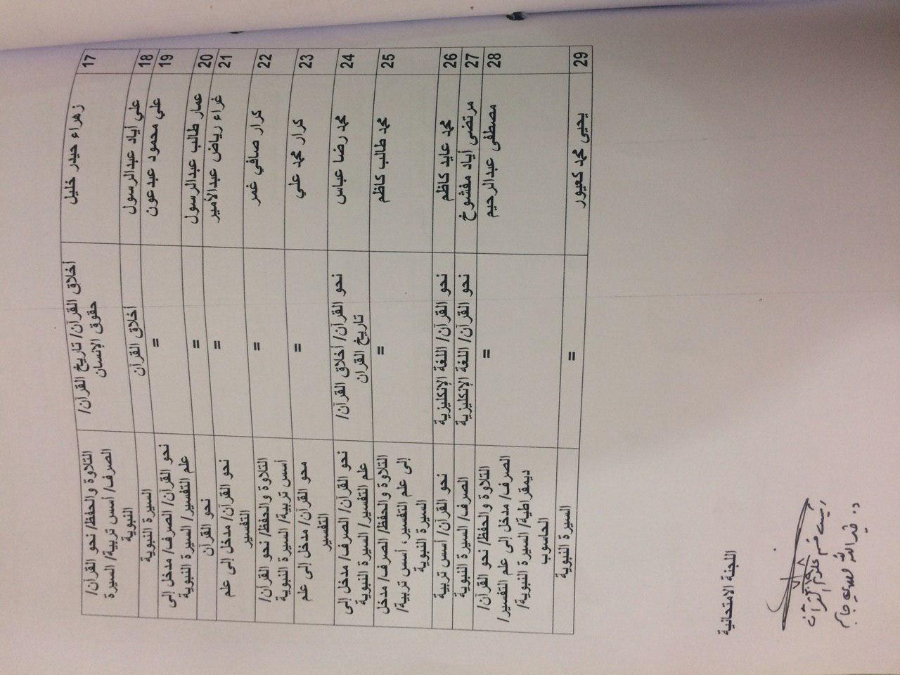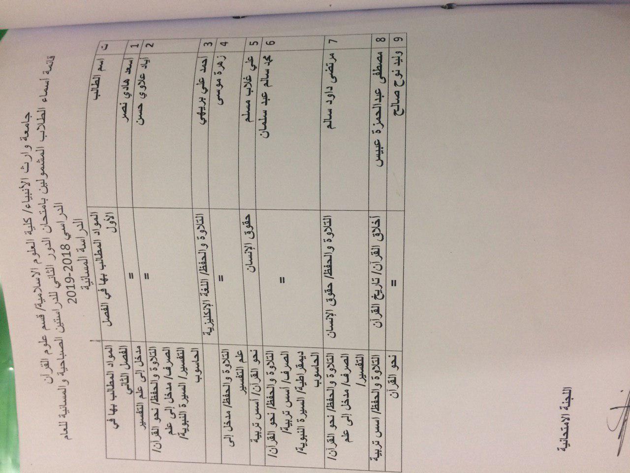 اسماء الطلبة المشمولين بالدور الثاني للدراستين الصباحية والمسائية للعام الدراسي 2018-2019