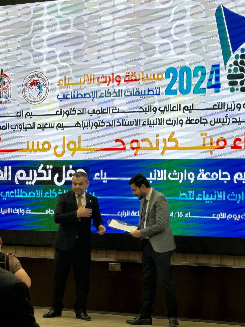 تدريسي في كلية العلوم الإسلامية يحصد المركز الثالث في مسابقة تطبيقات الذكاء الاصطناعي بجامعة وارث الأنبياء