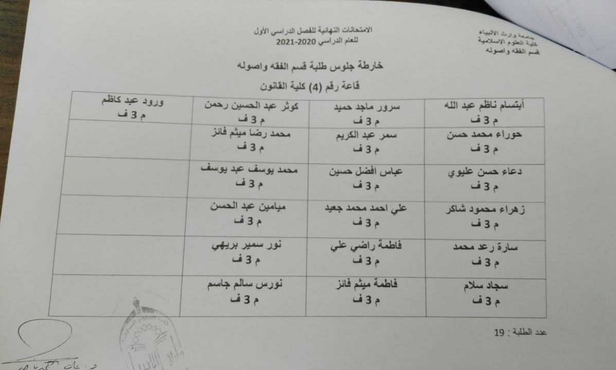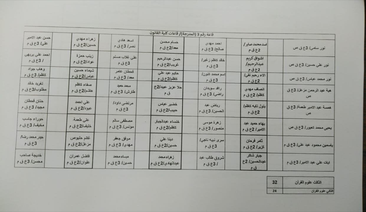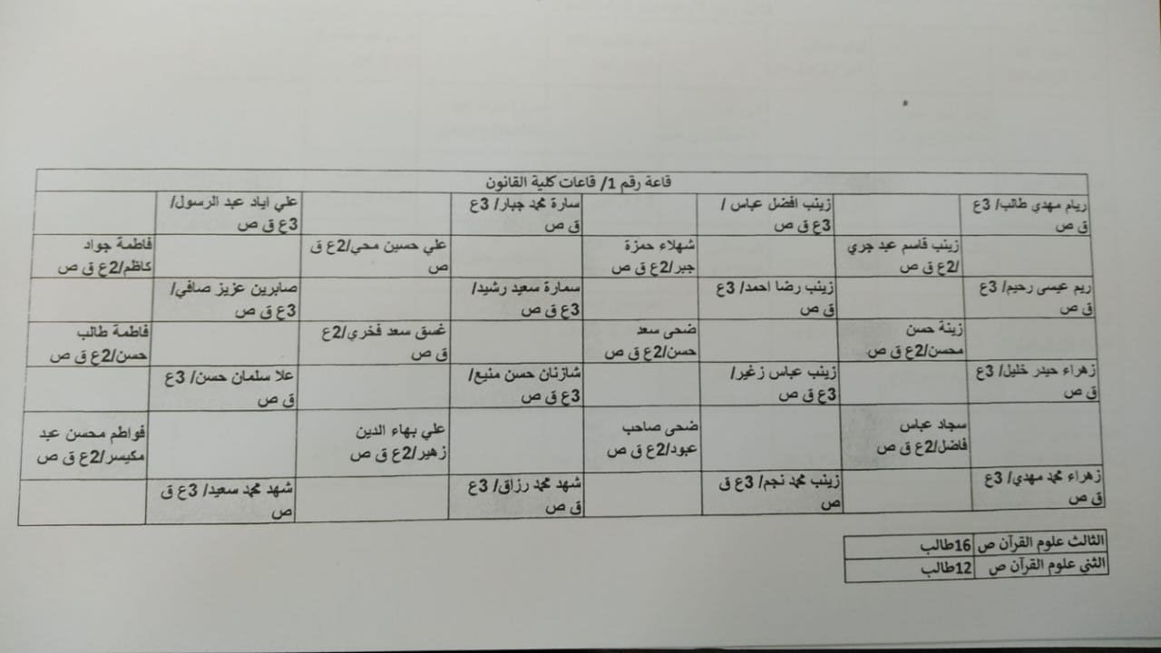 توزيع الطلبة على القاعات الدراسية استعداداً لاداء الامتحانات الحضورية النهائية للفصل الدراسي الاول لطلبة كلية العلوم الإسلامية