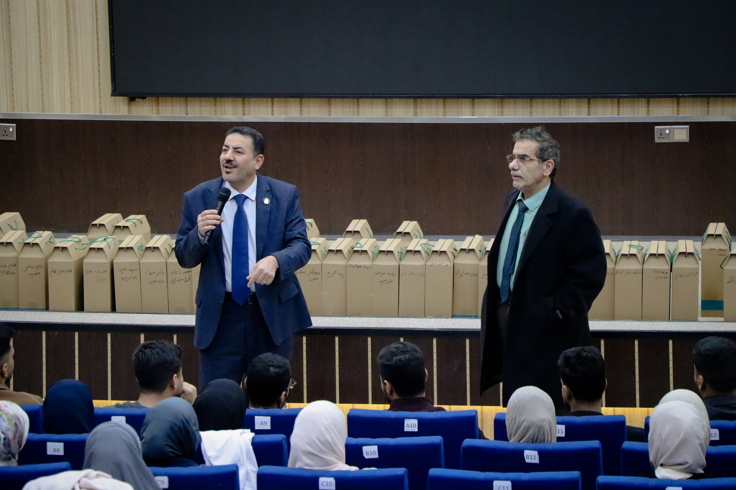 ألقى الأستاذ الدكتور عميد كلية الطب، علي عبد سعدون الغزي، يرافقه معاون العميد للشؤون العلمية، الدكتور علي عبد الرضا الغره، كلمة توجيهية لطلبة المرحلة السادسة بمناسبة تخرجهم، وذلك تزامناً مع تسلّمهم روب التخرج والقبعة. وتضمنت الكلمة التهنئة للطلبة بهذه المناسبة، مع التأكيد على أهمية الالتزام بالقيم المهنية وتحمل المسؤولية في مسيرتهم الطبية المقبلة