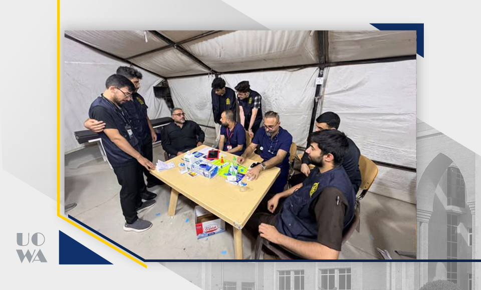 في أجواء الإيمان والعطاء وضمن المسؤولية الإنسانية والمجتمعية تواصل المفارز الطبية لطلبة كلية الطب في جامعة وارث الانبياء عليه السلام عملها الدؤوب لخدمة ملايين الزائرين الوافدين إلى كربلاء المقدسة لإحياء أربعينية الإمام الحسين (عليه السلام).