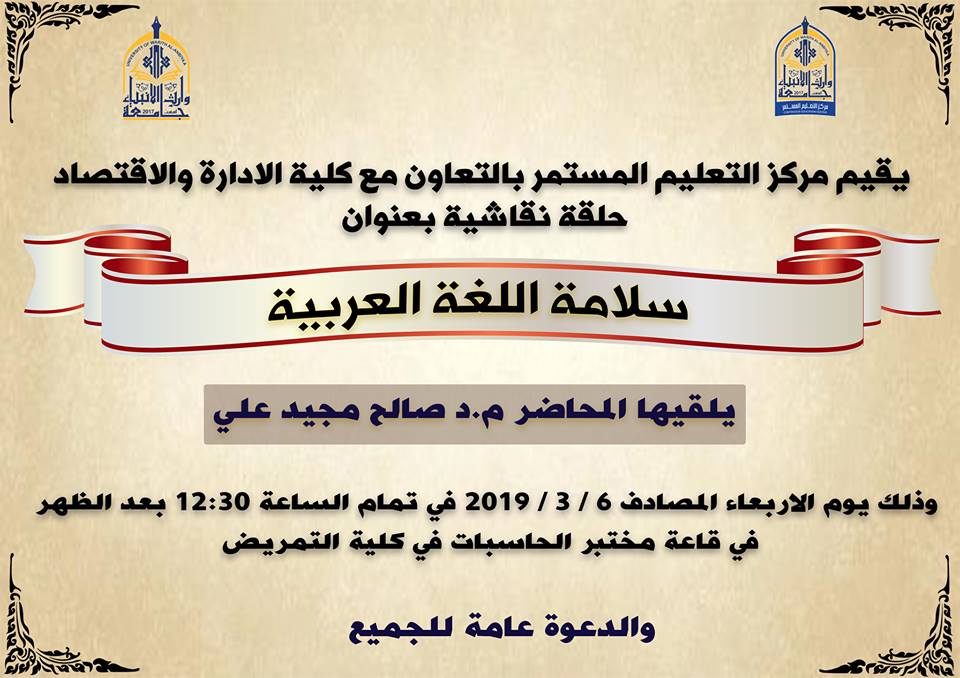 اقيمت في قاعة الامام الحسن -كلية الادارة والاقتصاد حلقة نقاشية بعنوان طرق التسجيل بمواقع التواصل العلمي(reserchgate) من قبل أ.د.عامر العطوي و م.م.علي عزيز وقد تضمنت الحلقة الاشارة الى العديد من المحاور المهمة التي تتعلق بالتواصل العلميreserchgate والية تسجيل في الموقعreserchgate والخطوات اللازم اتباعها من قبل باحثيين بالاضافة الى تقديم امثلة تطبيقية حولالموقع وقد شارك في الحلقة النقاشية تدريسي كلية الادارة والاقتصاد و عدد من تدريسي باقي الكليات وعدد من الطلبة