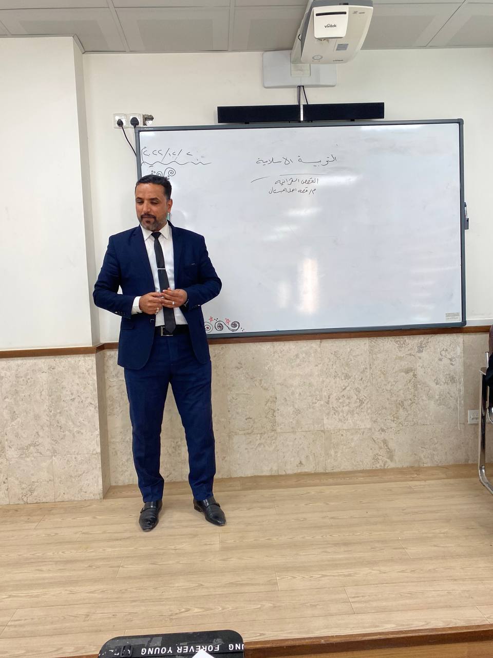 ضمن الفعاليات التي تقيمها لجنة النشاطات الطلابية في كلية العلوم الاسلامية والتي تصب في مصلحة تنمية مهارات الطلاب وامكانياتهم الادائية بما يرتبط بالمسيرة العلمية يستمر طلبة المرحلة الثالثة / الدراستين الصباحية والمسائية في إلقاء محاضراتهم في التربية الإسلامية تحت عنوان ( الوقوف أمام الجمهور) لتنمية قابلية الطالب وبناء الشخصية وامكانياتها في اداء الدروس بكفاءة ومهنية بما يتلائم ومرحلة التطبيق. وقد تم العمل باشراف ( م. ياسمين سلمان الطرفي) وباداء متواصل على طول الفصل الدراسي