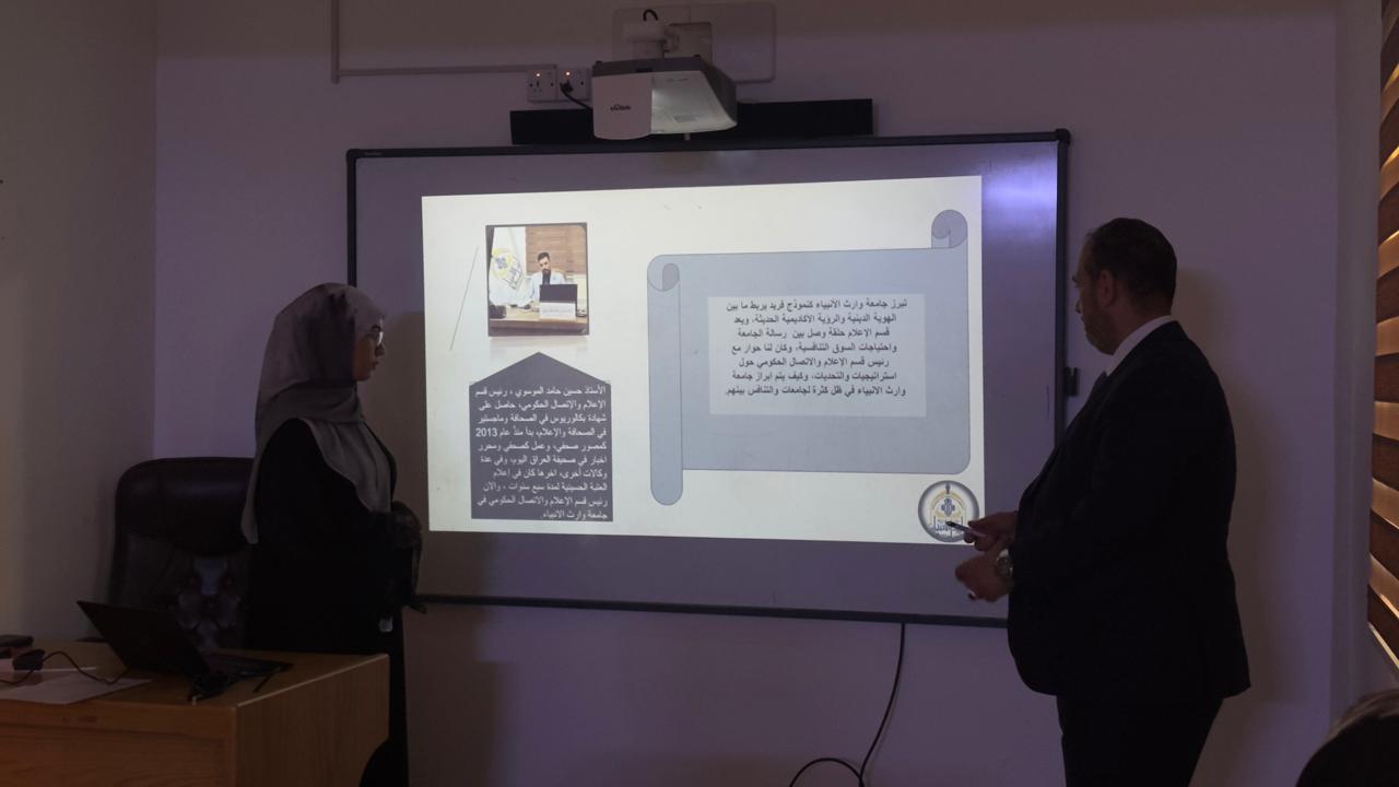 اقام مركز التعليم المستمر في جامعة وارث الانبياء(عليه السلام) وبالتعاون مع قسم الهندسة المدنية في الجامعة دورة تدريبية خاصة لاعضاء هيئة التدريس في كلية الطب حول نظام التعليم الإلكتروني تحت عنوان (ادارة المقرر الدراسي داخل منصة التعليم الإلكتروني) القاها م.م.صفاء صبري .و قد تحدث الدكتور حيدر الغانمي مدير مركز التعليم المستمر قائلاً : الهدف من هذه الدورة هورفع كفاءة الاساتذة في استخدام نظام التعليم الالكتروني بصورة احترافية تلافياً للمشاكل المستقبلية ، بالإضافة الى كيفية ادارة الكورس الدراسي ورفع المقررات الدراسية والجلسات الإلكترونية وغيرها من المميزات العديدة التي يتيحها النظام الإلكتروني من وسائل إيضاحية وغيرها للطلبة.