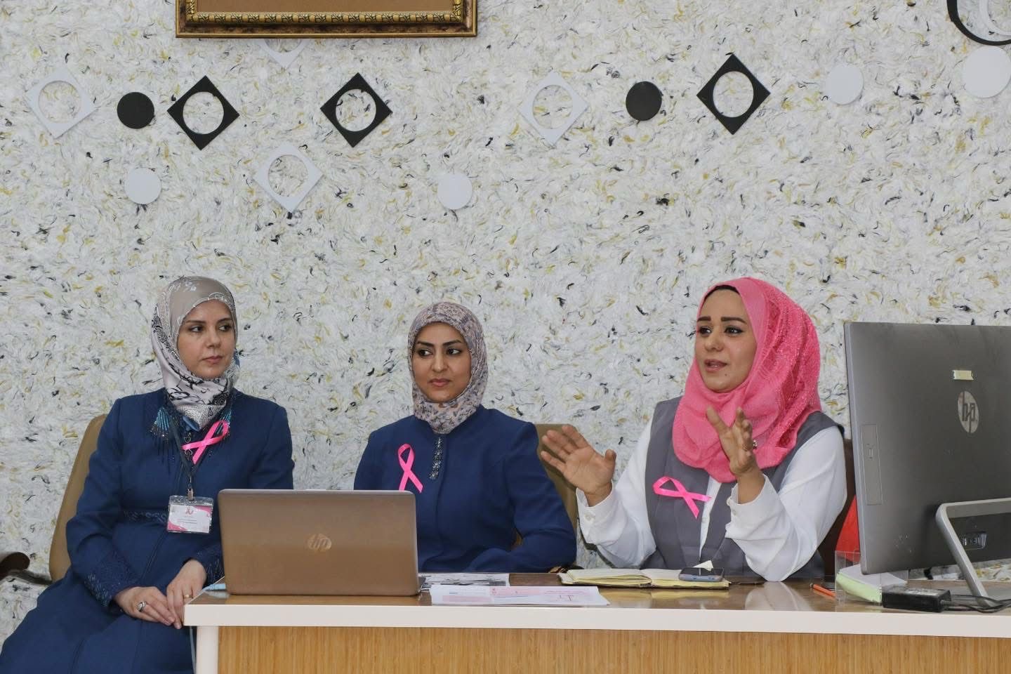 اقامت تدريسيات من كلية التمريض في جامعة وارث الانبياء متمثله بكل من م .د زهراء عبد علي الثابت ، م. د خلود هاشم ، م .د فاطمه فاضل نشاطا توعويا مميز حول سرطان الثدي في كلية الاداب جامعة بابل