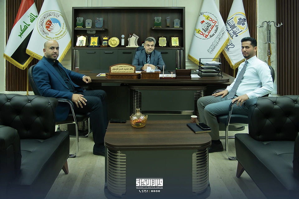 استقبل الأستاذ الدكتور واقد الموسوي، مساعد رئيس جامعة وارث الأنبياء للشؤون العلمية، الأستاذ المساعد أحمد قاسم محمد، ممثل جامعة المثنى ومدير مركز التعليم المستمر، لمناقشة التطورات في التعليم المستمر بجامعة وارث الأنبياء (عليه السلام).