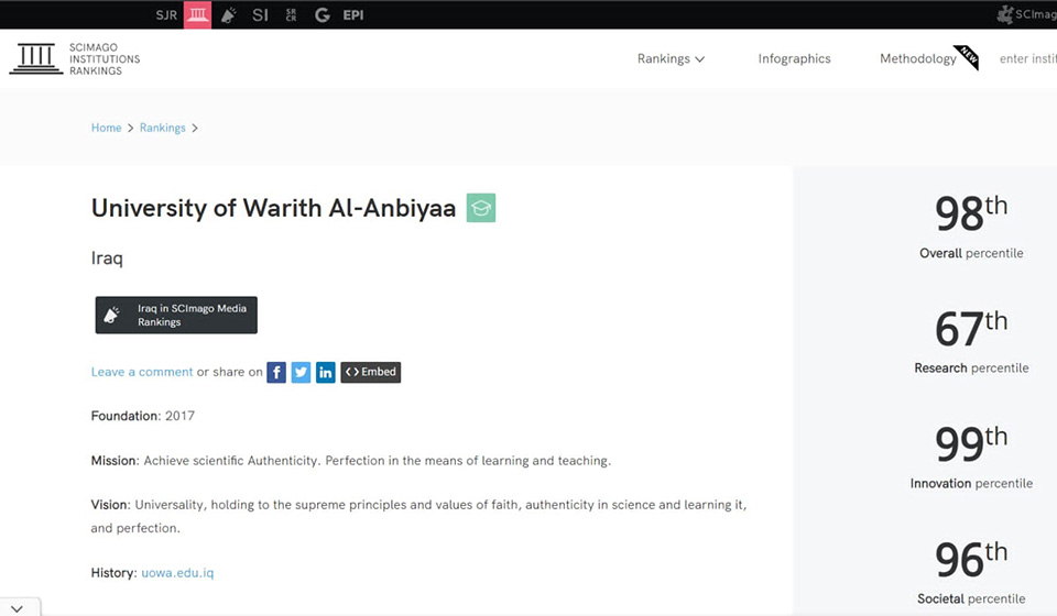 تميز عالمي: جامعة وارث الأنبياء تبرز في تصنيف Scimago للمؤسسات البحثية