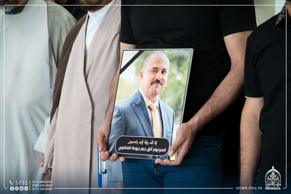 بحضور رئاسة جامعة وارث الانبياء(عليه السلام)، عمادة وطلبة كلية العلوم الإسلامية ينظمون وقفة حداد وقراءة سورة الفاتحة على روح المرحوم الطالب (ألق جبار جوده الفتلاوي )، الذي وافاه الاجل اثر حادث مؤسف سائلين الله (عز وجل) أن يتغمده برحمته الواسعة، ويلهم ذويه الصبر والسلوان.