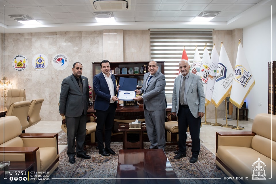 استقبلت رئاسة جامعة وارث الانبياء (عليه السلام) متمثلة بالاستاذ الدكتور ابراهيم الحياوي وفد عمادة كلية الطب في جامعة كربلاء برئاسة الاستاذ الدكتور رياض صيهود الزبيدي عميد الكلية وجاءت هذه الزيارة لتعزيز التعاون العلمي بين كليتي الطب في جامعة وارث الانبياء(عليه السلام) وجامعة كربلاء، وتعميق العلاقات المشتركة في مجال تطوير المناهج وطرائق التدريس.