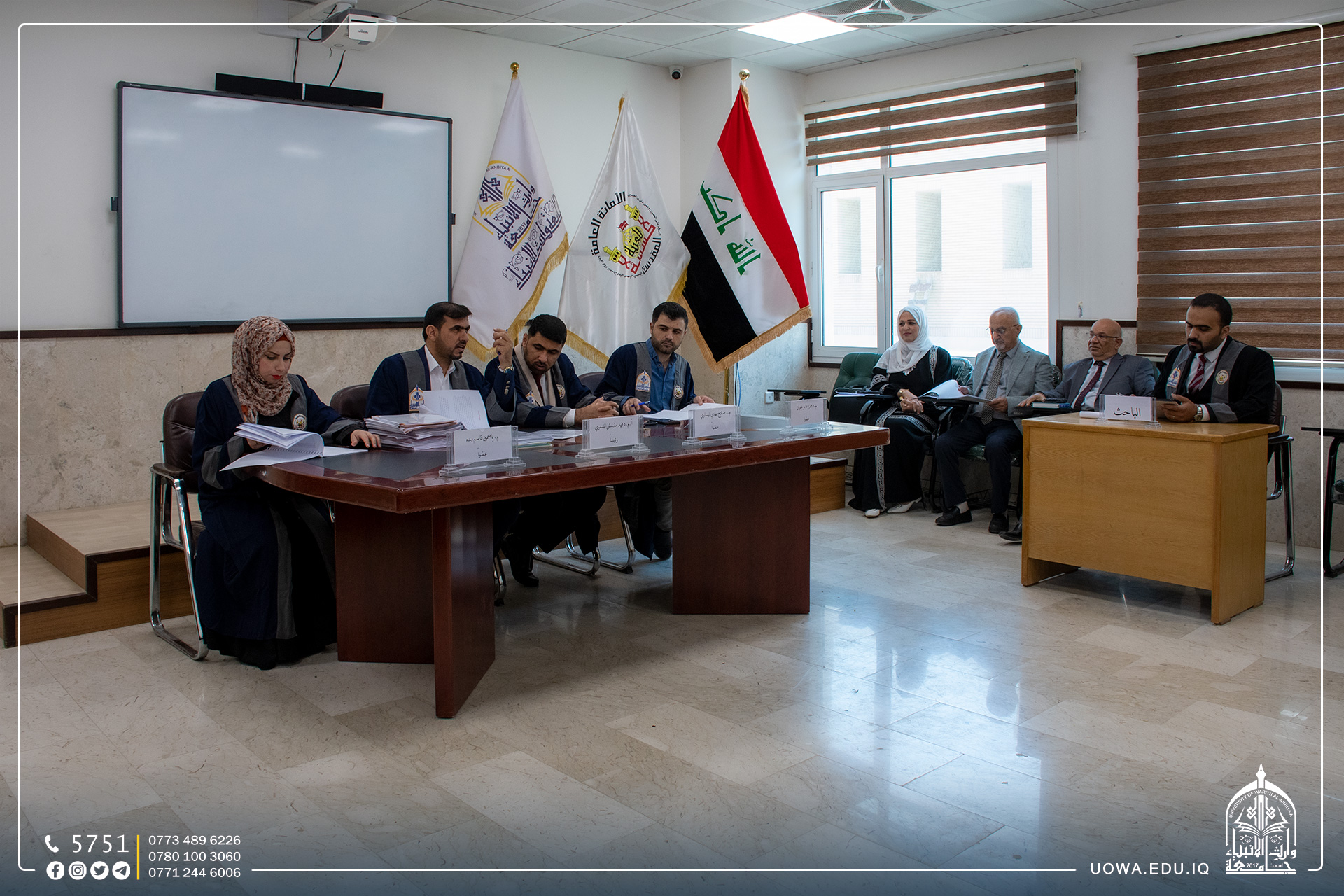 عمادة كلية التمريض في جامعة وارث الانبياء (عليه السلام) تناقش بحوث تخرج طلبة المرحلة الرابعة، بحضور لجنة علمية مشكلة من قبل عمادة الكلية للإشراف على المناقشة.