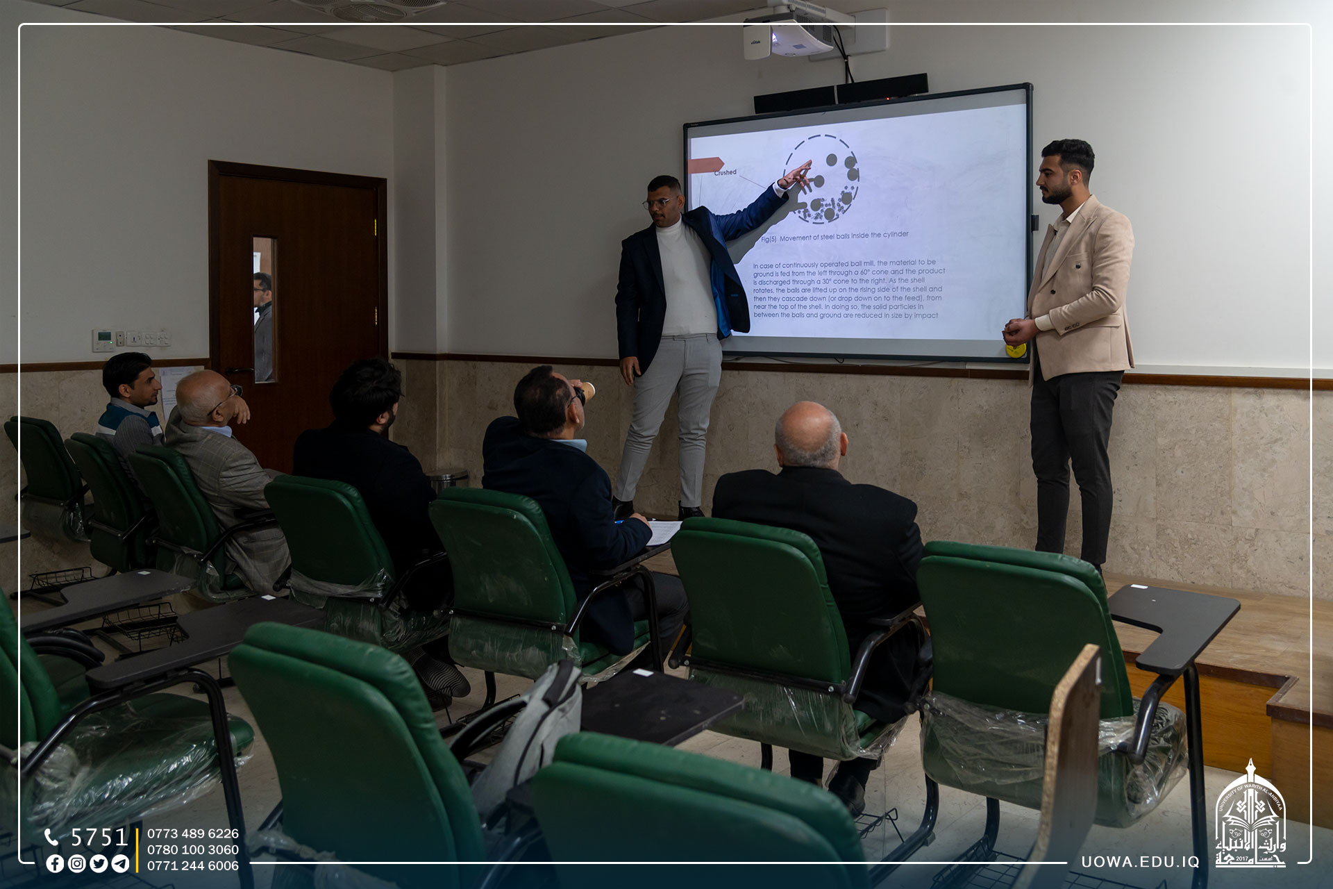 بحضور السيد مساعد رئيس الجامعة للشؤون الادارية الاستاذ الدكتور نوفل الاعرجي طلبة كلية الهندسة/ قسم هندسة تقنيات التكييف والتبريد يقدمون العرض الاولي لمشاريع تخرجهم.