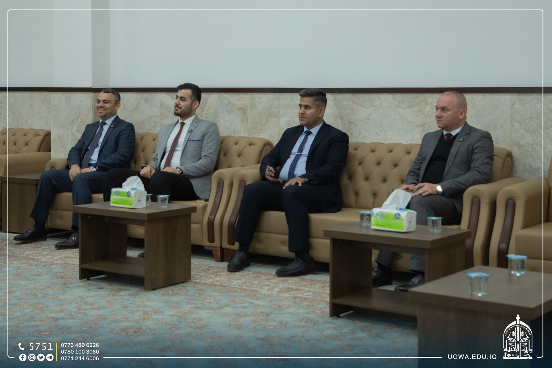 إذ كان باستقبالهم السيد رئيس الجامعة الاستاذ الدكتور ابراهيم الحياوي، وناقش الوفد التحضيرات الجارية لمهرجان ربيع الشهادة بنسخته السادسة عشرة الذي تقيمه الامانة العامة للعتبة الحسينية المقدسة وتعاون رئاسة الجامعة مع ادارة العتبة لانجاح هذا المهرجان الذي سيضم العديد من الشخصيات العلمية والاكاديمية والاجتماعية من داخل وخارج العراق.