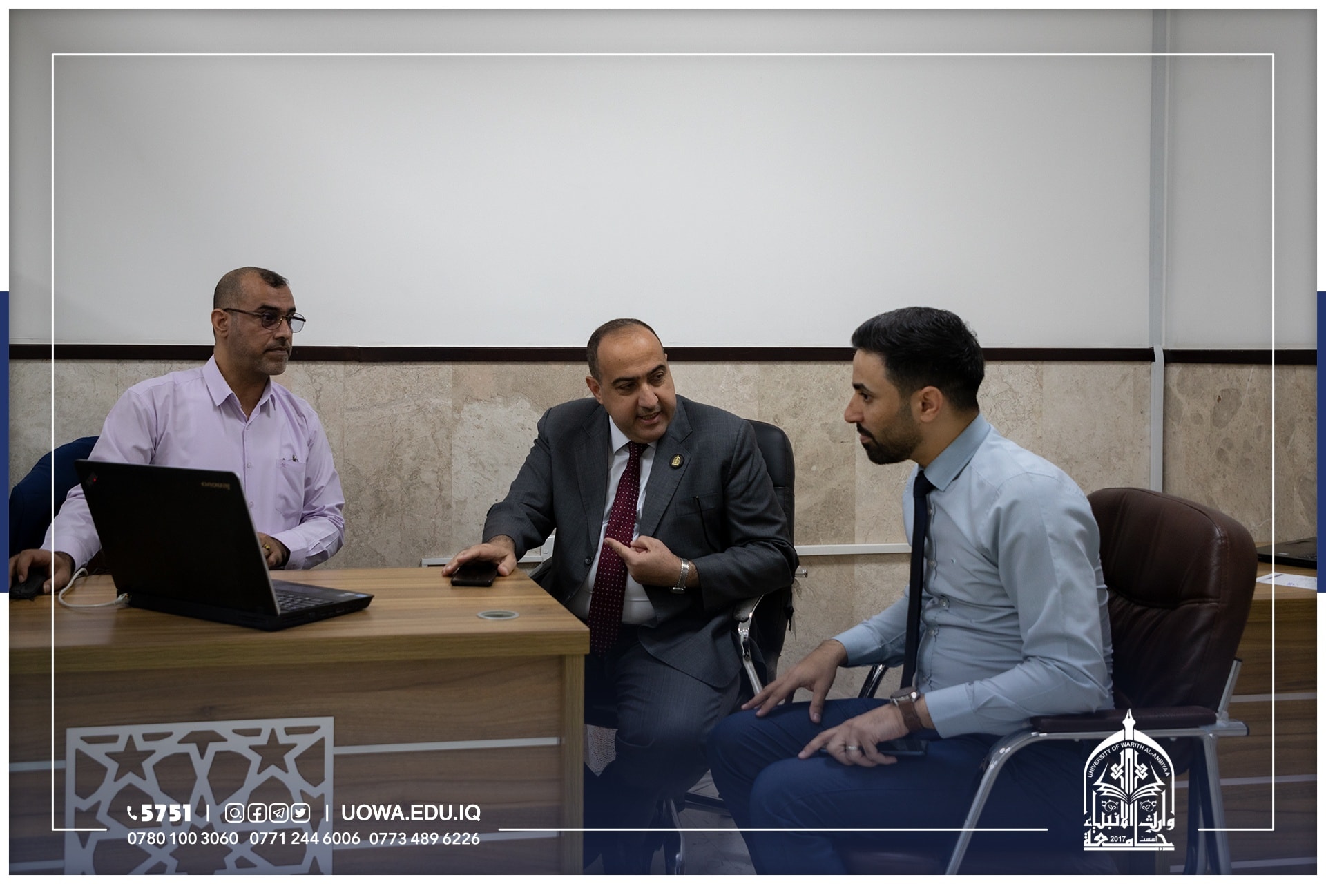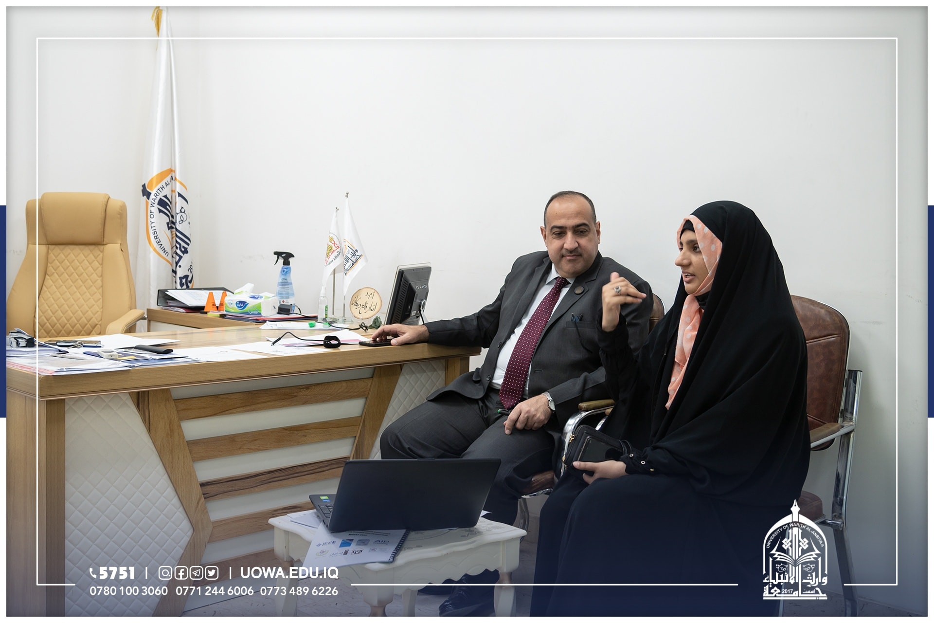 حرصاً على تطبيق معايير ومتطلبات التنمية المستدامة وضمن الخطة الاستراتيجية للجامعة تابع السيد رئيس الجامعة الاستاذ الدكتور ابراهيم الحياوي مع السيد رئيس قسم ضمان الجودة المدرس علي عبد الزهرة هادي