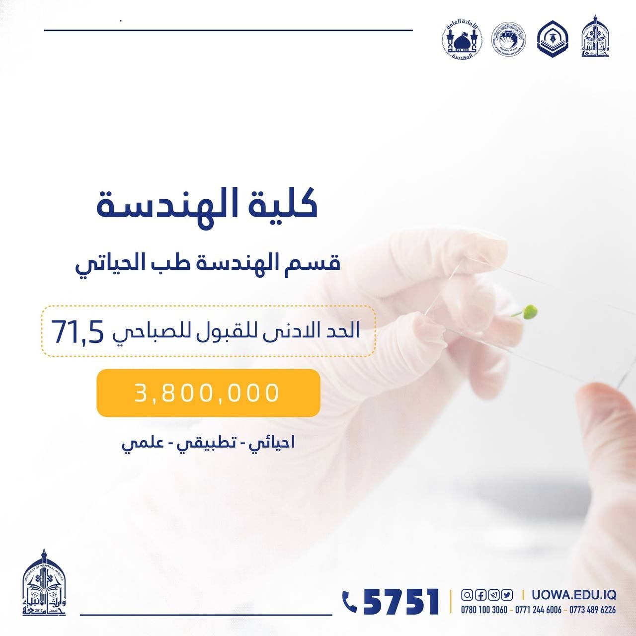 *الحد الادنى لمعدل القبول (71.5 صباحي)