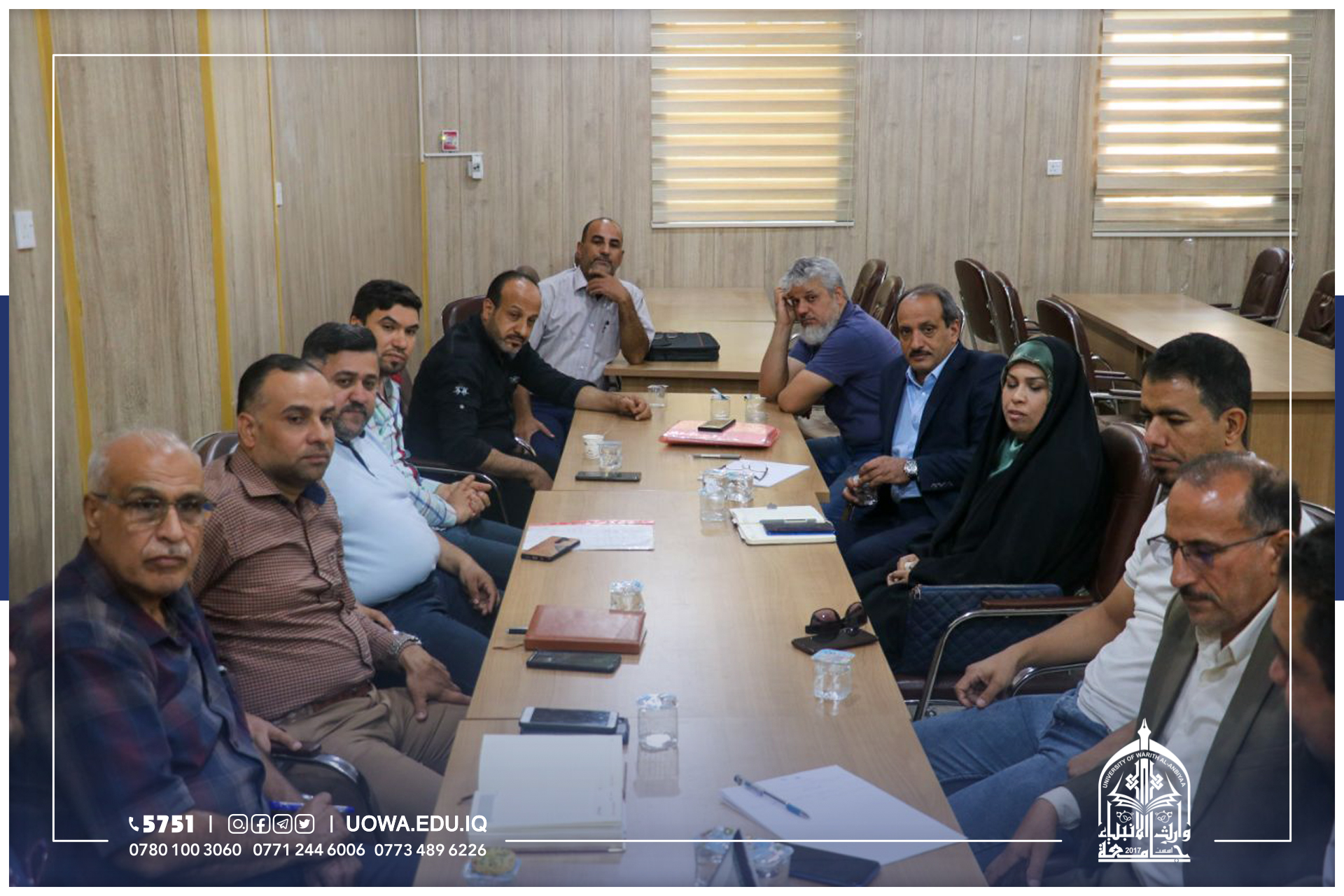 اجتمع الاستاذ المساعد الدكتور انمار فالح ديكان رئيس اللجنة العلمية، ومسؤول اللجنة التحضيرية المدرس الدكتور همام عبد العباس مع مسؤول قسم الاعداد والتدريب الدكتور علي الحميري وعدد من الاساتذة التربويين على قاعة ابن سينا في قسم الاعداد والتدريب .