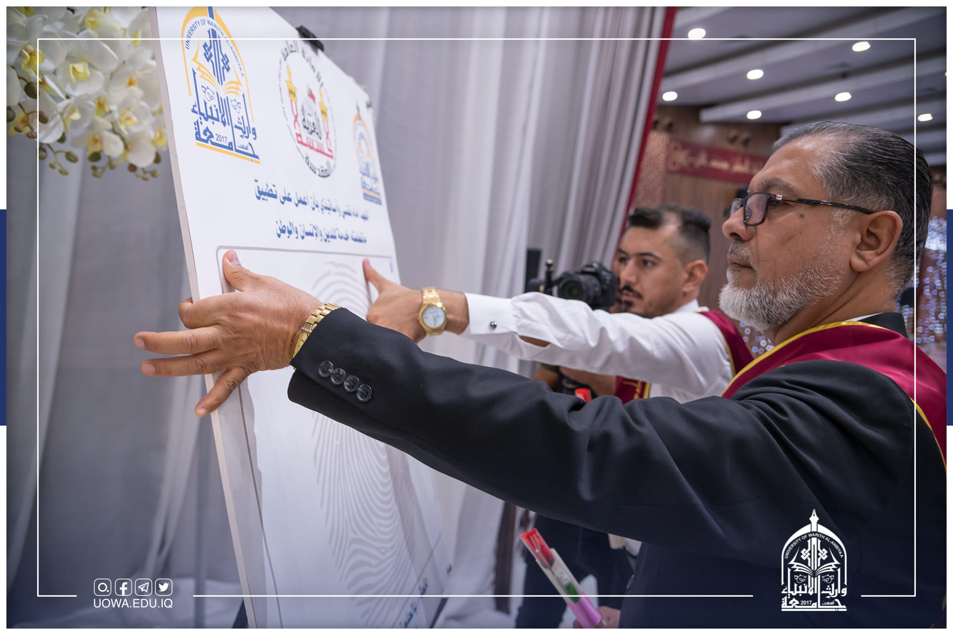 بحضور السيد رئيس الجامعة الاستاذ الدكتور ابراهيم الحياوي والسيد عميد كلية العلوم الاسلامية الدكتور طلال الكمالي، والسادة أعضاء هيئة التدريس وأهالي الطلبة.