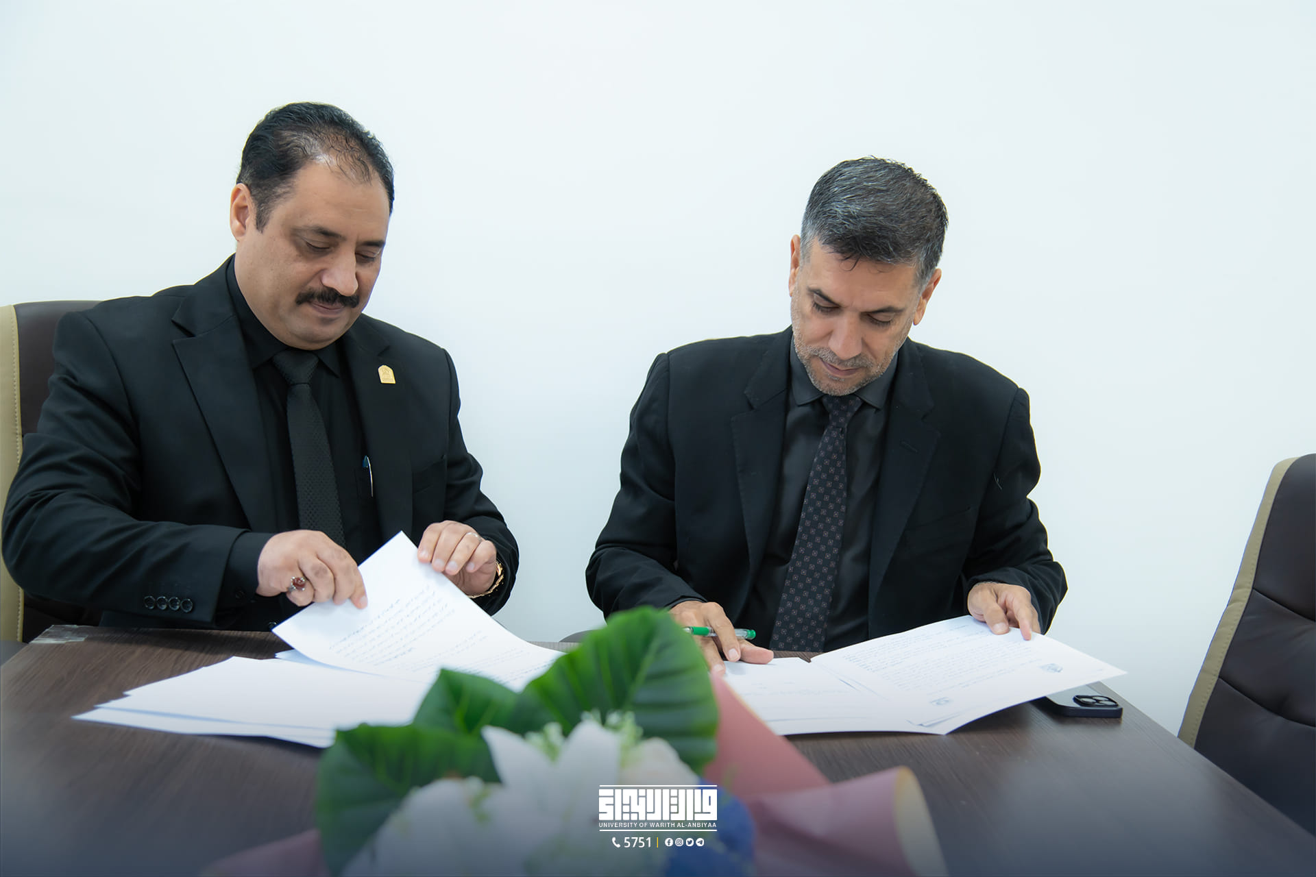 In a step that reflects the commitment of the two universities to strengthen academic cooperation, the Dean of the College of Engineering, Assistant Professor Dr. Hussein Hadi Al-Awadi, and his accompanying delegation, signed a scientific twinning agreement with Professor Dr. Haider Nazim Al-Mahanna, Dean of the College of Engineering at the University of Karbala.