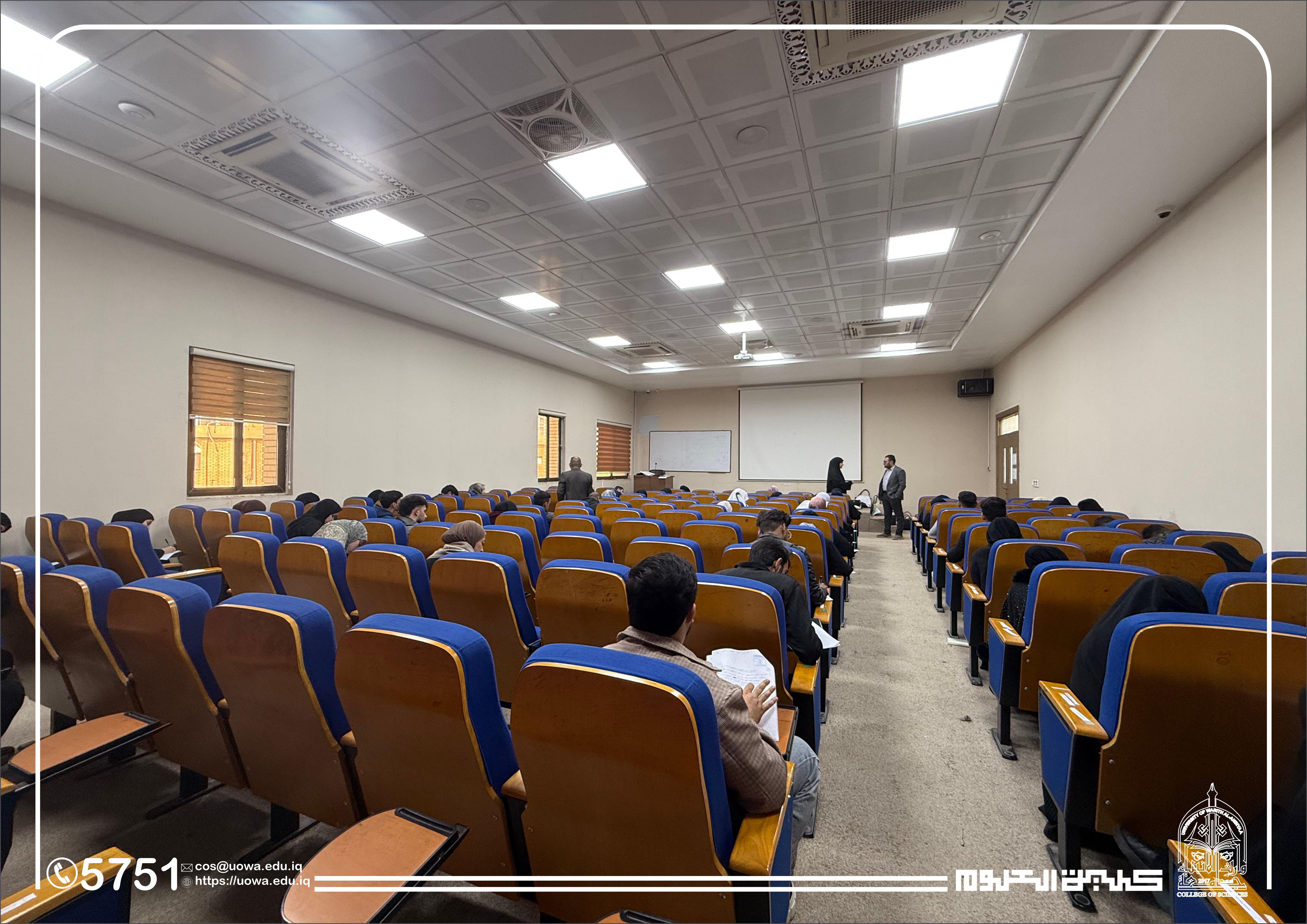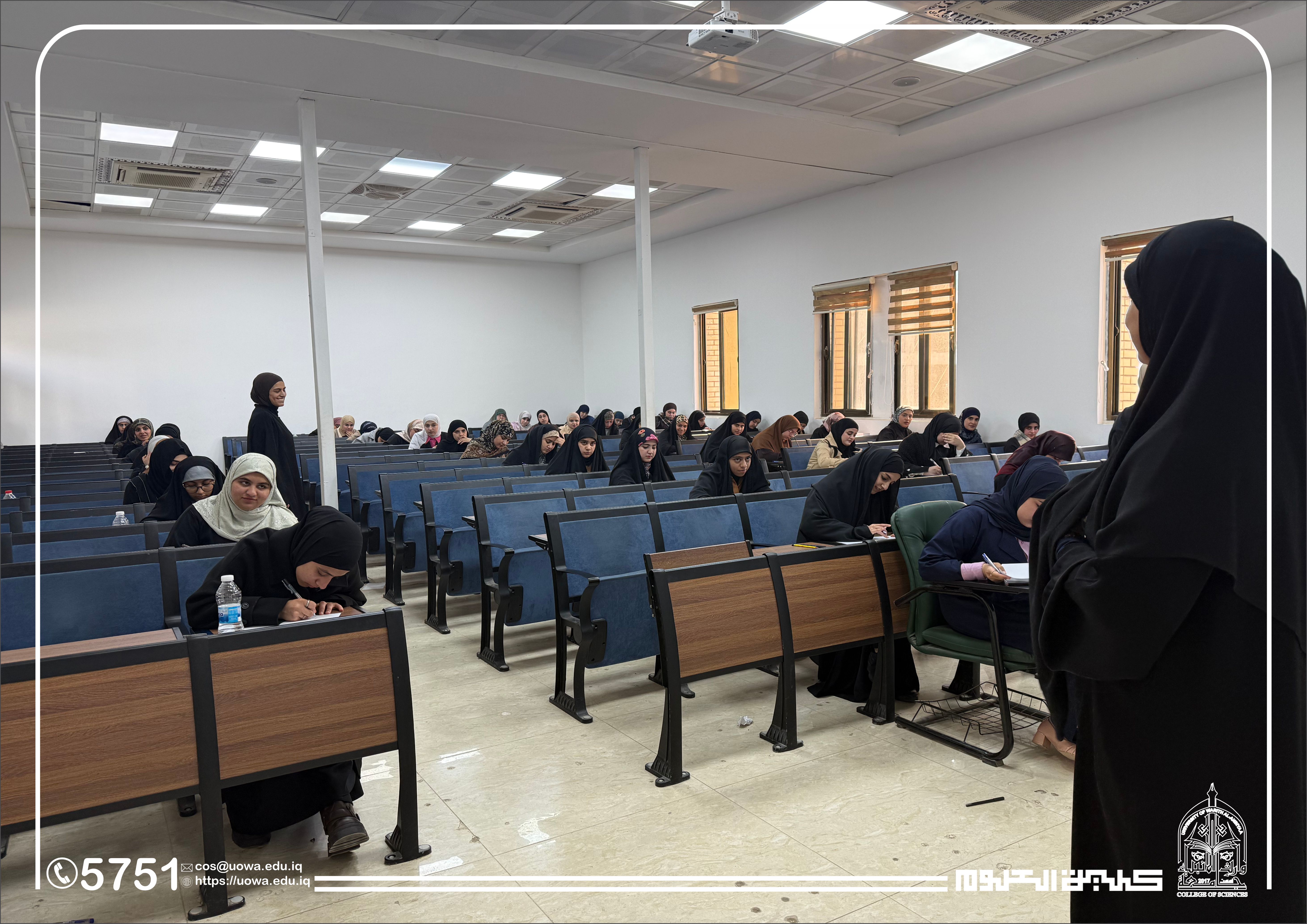 In the context of his continuous follow-up of the academic process and his commitment to providing an appropriate examination environment, the Dean of the College of Science at Warith Al-Anbiyaa University (peace be upon him) conducted an inspection tour of the examination halls to monitor the progress of the midterm examinations for first-year students in the Departments of Medical Physics and Forensic Evidence.