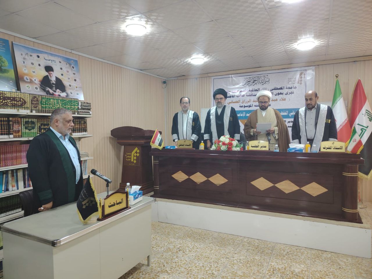 The Head of the Department of Refrigeration and Air Conditioning Engineering at the College of Engineering/University of Heir al-Anbiya (peace be upon him), Assistant Professor Dr. Muhammad Hassan Abboud (member and supervisor), and Assistant Professor Dr. Raouf Muhammad Radi (member) participated in the discussion of the master’s thesis that was conducted within the Mechanical Engineering Department at the University of Karbala. He discussed the thesis of researcher Waseem Kazem Falih entitled (Improving the performance of steam generation in conical cavity receivers using a Fresnel lens)The study aims to increase the efficiency and productivity of the solar steam generation system by using conical cavity receivers, a glass cover, and a Fresnel lens of both linear and dot types..
