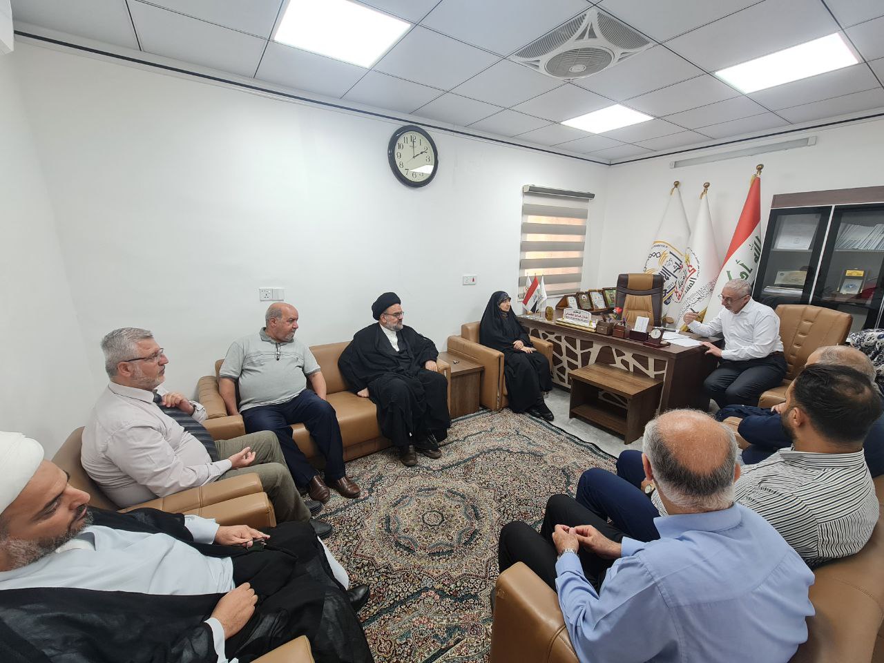 The President of Warith Al-Anbia University (peace be upon him), Professor Ibrahim Saeed Al-Hayawi, accompanied by Professor Dr. Waqid Al-Moussawi, Assistant President of the University for Scientific Affairs, and Assistant Professor Dr. Talal Faeq Al-Kamali, Dean of the College of Islamic Sciences, received a delegation from the Scientific Committee of Warith Al-Anbia Foundation for Specialized Studies in the Husseini Renaissance affiliated with the Holy Shrine of Imam Hussain.