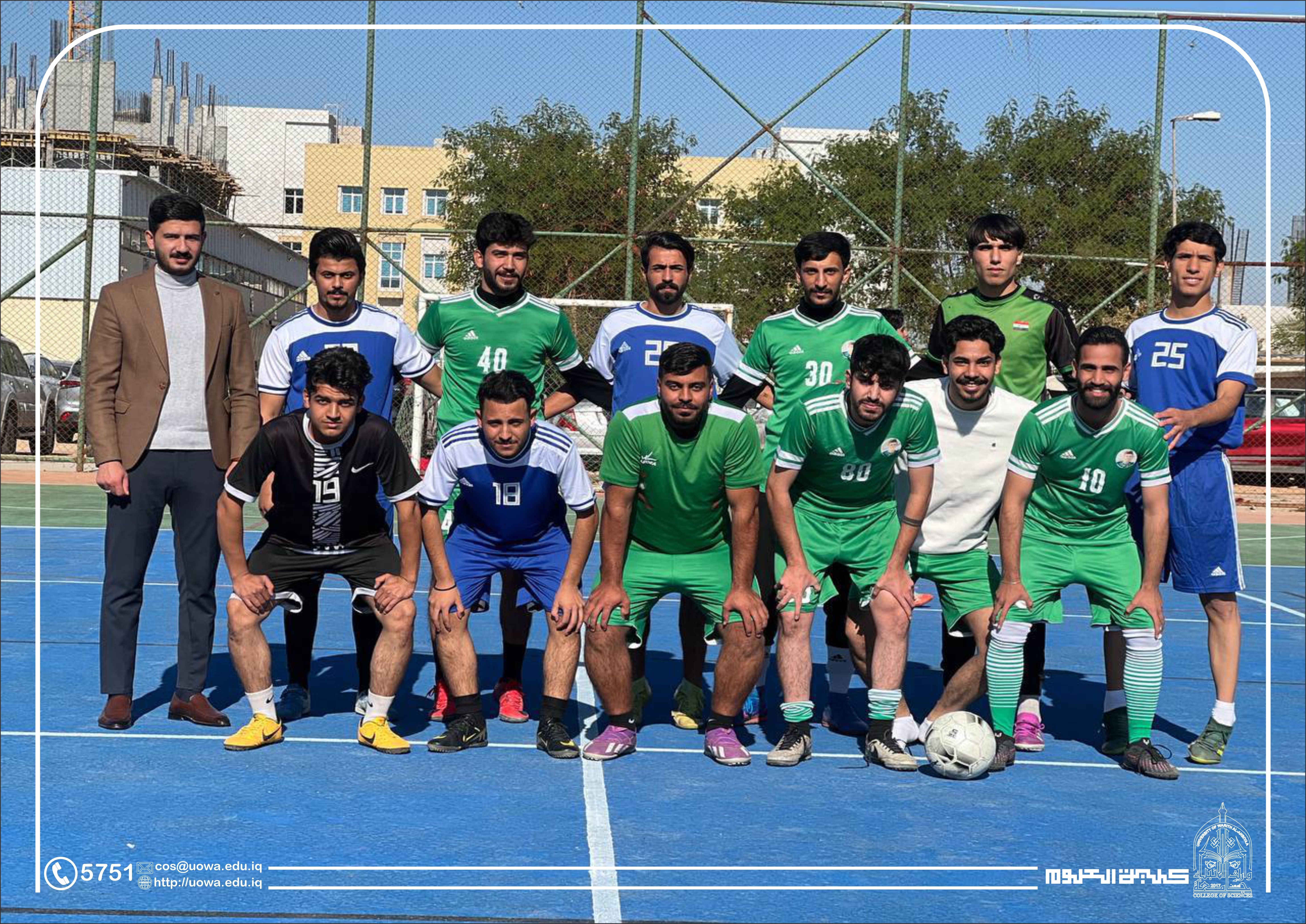 As part of the annual program of student and extracurricular activities, and under the patronage of the Dean of the College of Science (Dr. Shaimaa Hussein Nawfal), the college's Sports Activities Unit organized a friendly football match between a team of faculty members and a team of students.